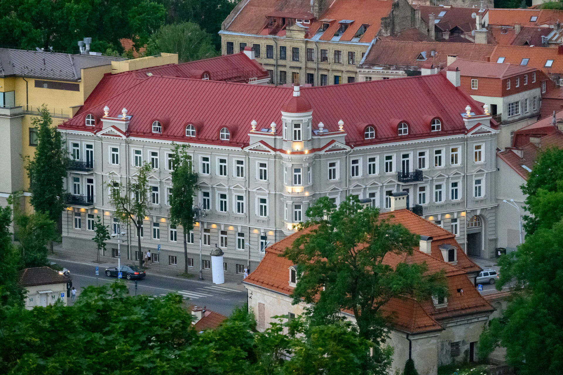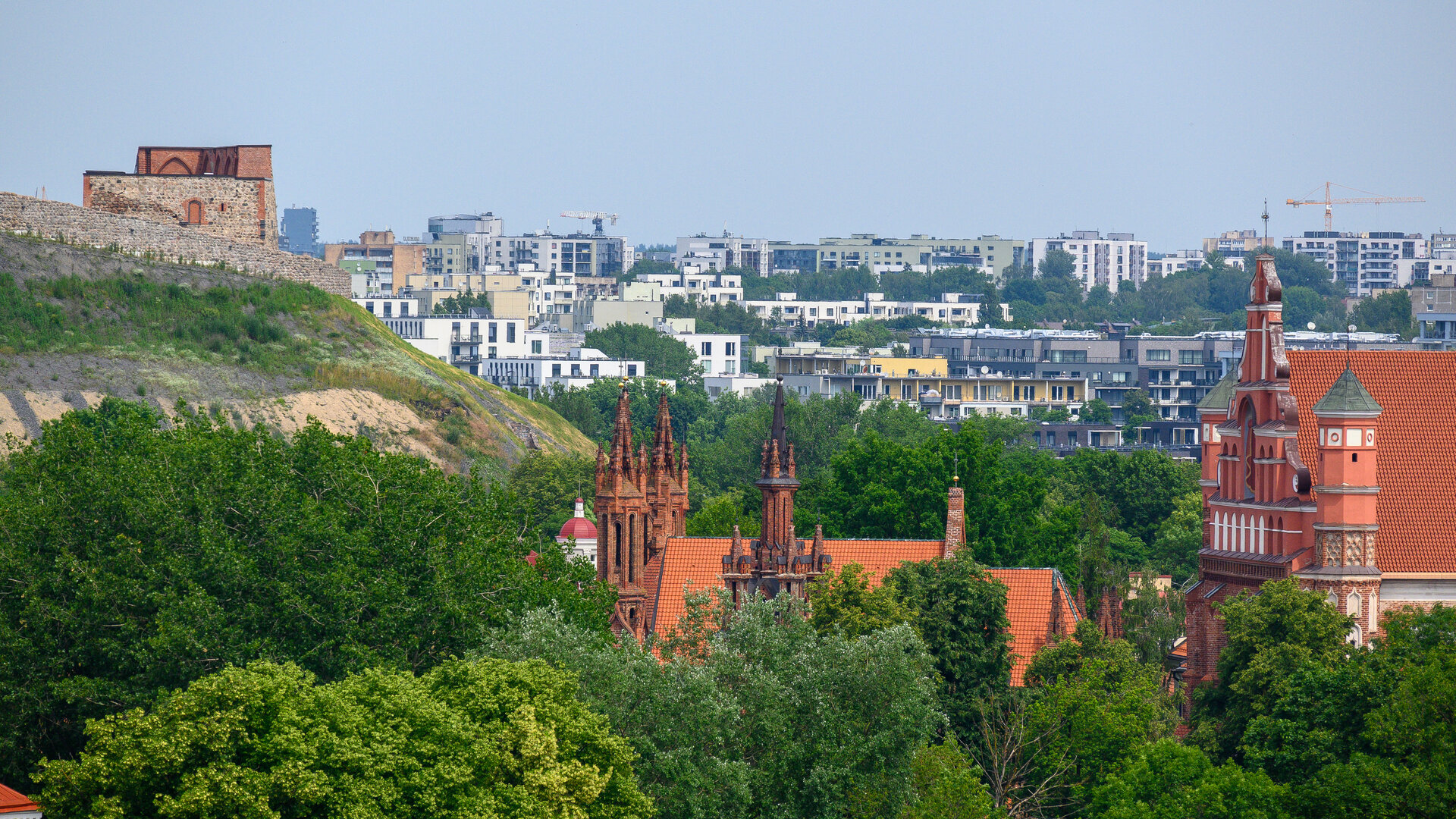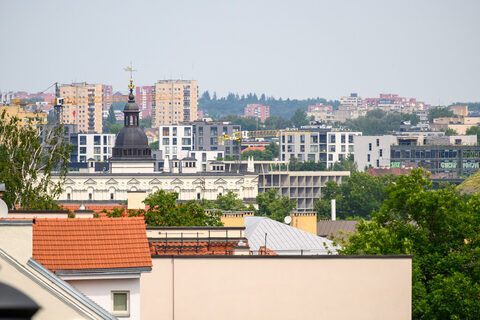 Lehce po obědě končíme a utíkáme před sluncem zpět do hotelu. Navečer ještě sami projdeme ulici Literatų s dekorativními cedulemi, náměstí u radnice, a protože Gediminasův hrad nám už zavřel, vystoupáme alespoň na Horu tří křížů, odkud je vidět celé město jako na dlani.