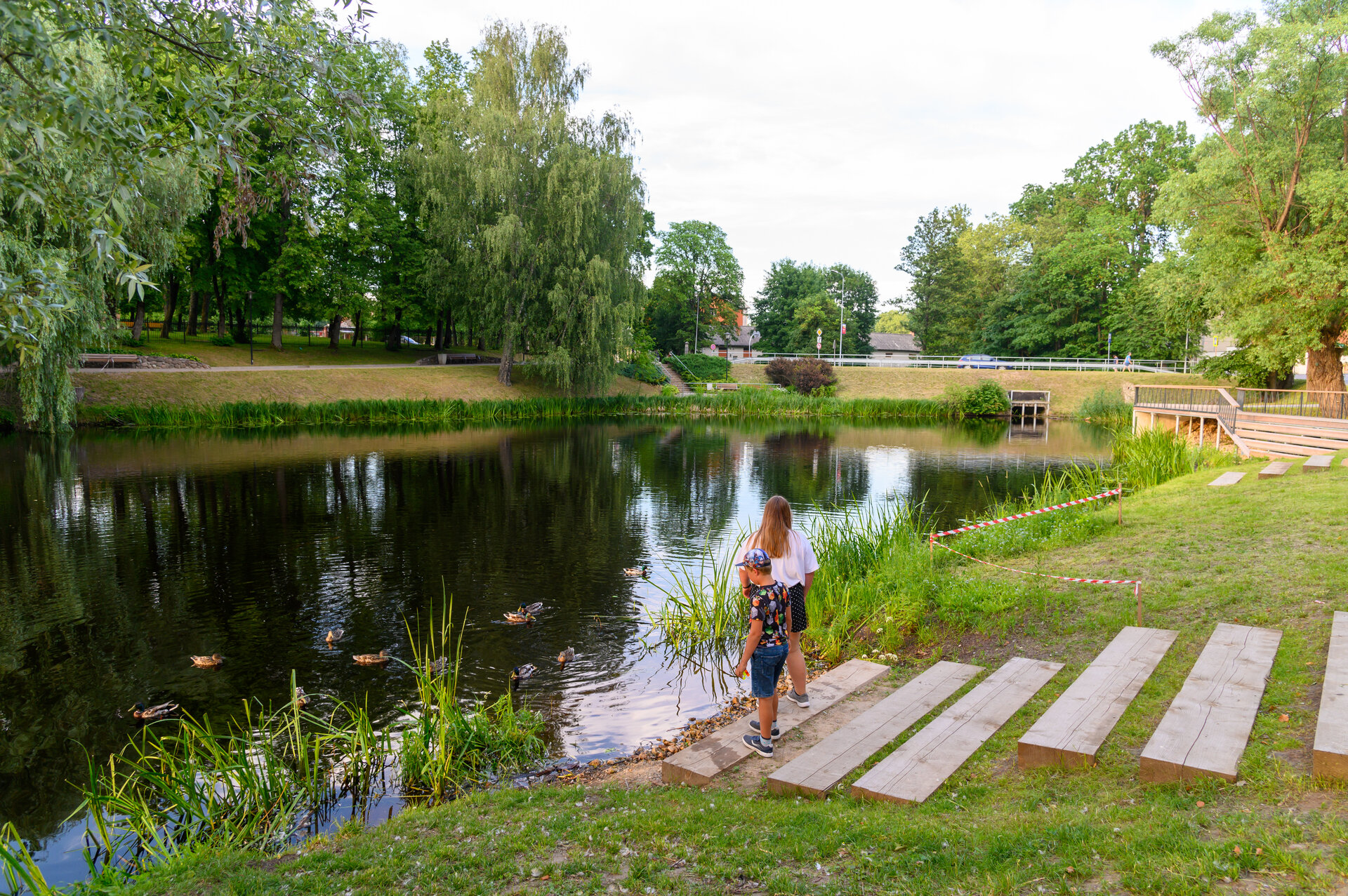 Daugavpils má zhruba osmdesát tisíc obyvatel, takže úplně malé to není. Líbí se nám, jak je Lotyšsko krásně zelené. Ulice jsou plné stromů, hodně trávníků, parků, a při cestování mezi městy je to v podstatě jen příroda. Všude jezera, mokřady, řeky. A čápi — hnízda mají po zahradách i polích. Teď z nich všude vykukují mláďata.